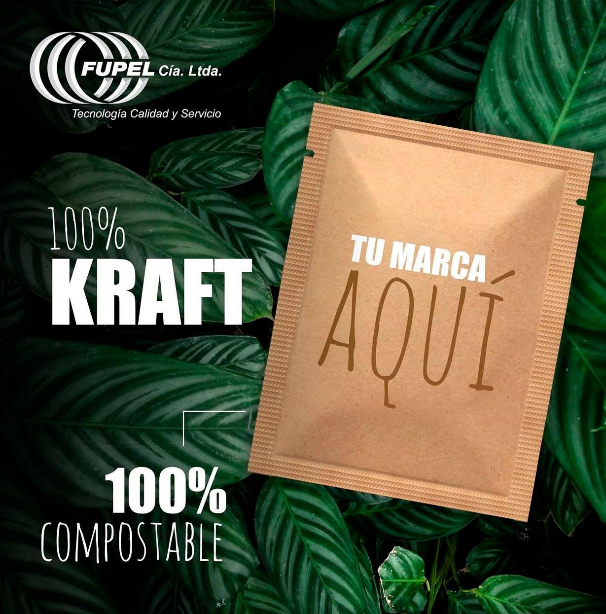Son envases flexibles y resistentes, fabricados uniendo papel Kraft (celulosa de pulpa de madera) con películas plásticas como polietileno (PE) o BOPP. Esta combinación aporta durabilidad y una barrera protectora superior contra la humedad, la grasa y el oxígeno, ideal para envasar alimentos y productos secos.